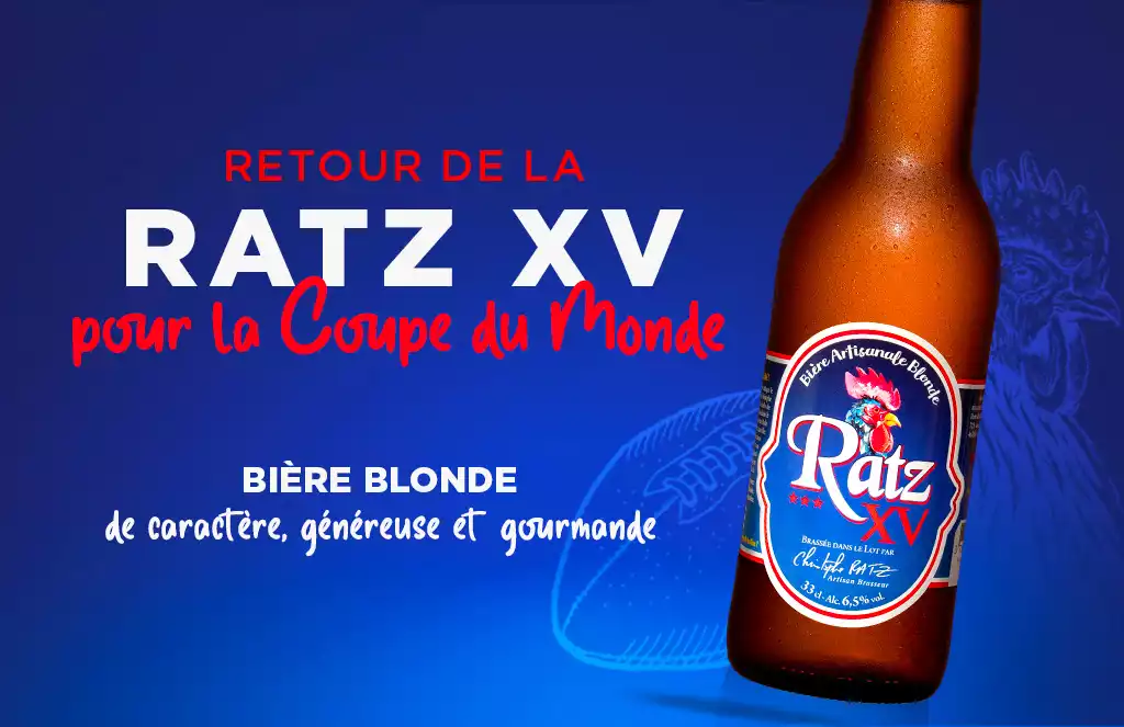 Notre bière artisanale Ratz XV est de retour pour accompagner le XV de France dans cette Coupe du Monde de rugby 2023.