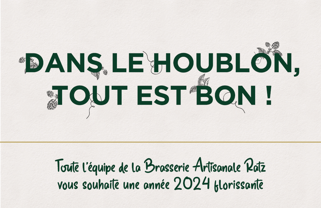 Toute l’équipe de la Brasserie Artisanale Ratz vous souhaite une année 2024 florissante.